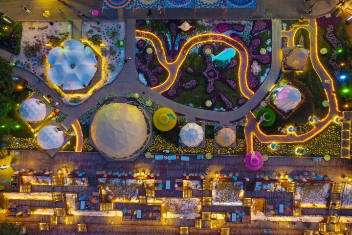 ·万岁山武侠城:夜幕降临,空中花海营地星光璀璨,浪漫与侠义巧妙融合,漫步其中,每一帧都是值得留恋的画卷。