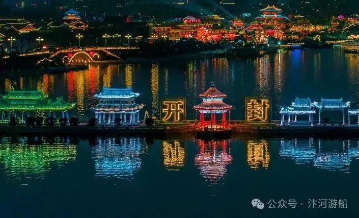 ·汴河:傍晚时分,乘一艘摇橹船,看两岸红灯次第亮起,穿过一座座拱桥,仿佛航行在《清明上河图》的夜景中。晚上,水心岛附近的灯光秀不容错过。