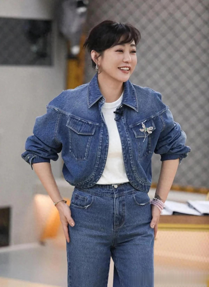 46岁郝蕾瘦身后大变样! 穿牛仔外套+白T恤, 时髦又减龄!