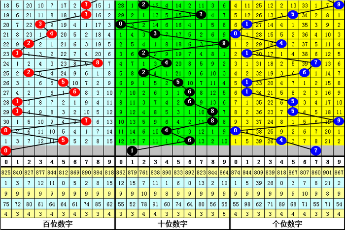 百位分析:最近50期表现较热的号码有:1出现9次,7出现7次,4、6、8出现6次;表现较冷的号码有:0、9出现2次,2出现3次。出号奇偶比为27:23,012路比为14:22:14。本期该位绝杀两码4、8,参考号码0、1、3,精选一码0。