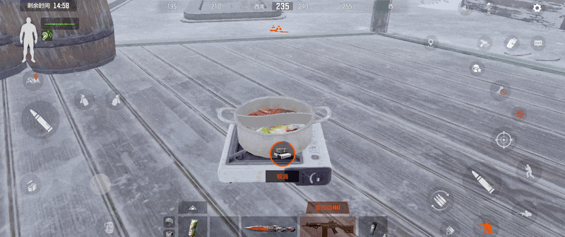 不仅如此,游戏后来也加入了移动打药,投掷道具的抛物线和准星显示也加了进来,就连右上角都多了个小地图,能实时查看玩家周围的情况与所处位置。