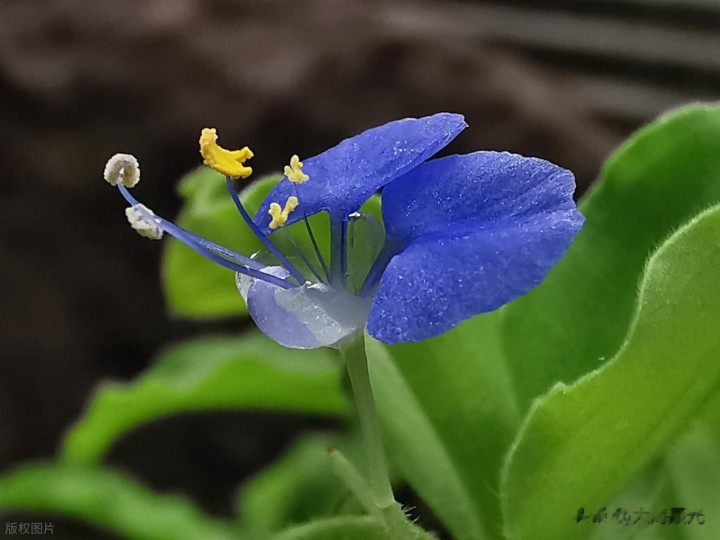 如地面上的青草,修剪了一次又一次,此时新生叶的鲜嫩而丰盛。鸭跖草开着点点深紫色的花朵,如钻石一般闪烁着迷人的光泽。与草叶的晶莹的水珠相得益彰,又各有光芒。小灰蝶,竟然也翩跹着翅膀,似在抖落洒沾在翅膀的雨水。