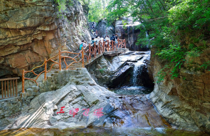 图为游客在石家庄市平山县驼梁风景区游玩。记者张晓峰摄
