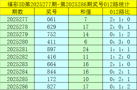上期回顾:福彩3D第2025286期开出奖号:827。奖号为组六形态,与试机号没有同,奇偶比为1:2,大小比为2:1,012路比为0:1:2,和值为17,跨度为6。