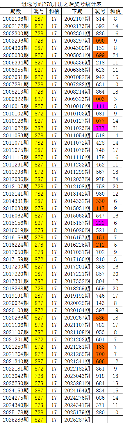 福彩3D第2025286期开出组选号码:278,该号码历史上组选出现了56次,其下期分别开出了号码:314、392、826、090、152、699、218、623、942、631、864、003、111、081、077、777、518、428、746、178、452、567、978、758、930、330、117、547、222、521、151、212、702、210、358、857、804、659、746、143、397、585、782、053、601、133、700、606、351、918、684、834、086、371、280,如图: