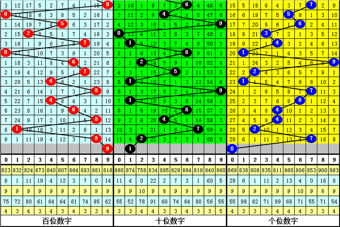 从以上统计可以看出,在组选分布图中,号码0开出18次,1开出23次,2开出18次,3开出17次,4开出12次,5开出15次,6开出14次,7开出19次,8开出19次,9开出10次,号码奇偶比为84:81,奇号走势活跃,本期预计奇号继续走热,奇偶比为2:1;号码大小比为:77:88,小 号表现相对较热,本期看好小 号再次走热,大小比参考1:2。