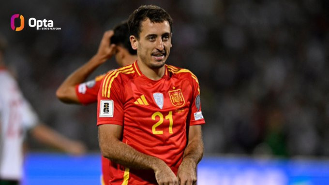 据Opta数据统计,西班牙前锋奥亚萨瓦尔在2025年的6场国家队比赛中参与了9粒进球(4粒进球,5次助攻),是自今年年初以来欧洲国家队层面参与进球最多的球员。
