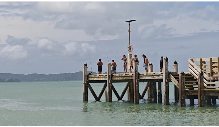 新西兰的公园,和我们国内的公园还是很有区别的,这里的公园都是大自然本来的样貌,几乎没有人为雕琢的痕迹,就像这个浅水沙滩,除了修建的这个简单的跳水平台外,就没有其他设施,沙滩外的公路旁,有一些民居和咖啡馆、简餐店,也许是因为人少的原因,这里也没有任何管理部门和人员,一切都是纯自然态……