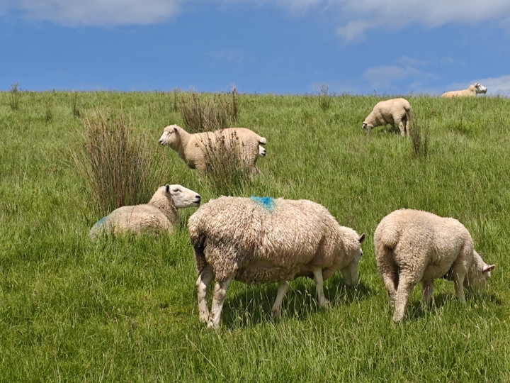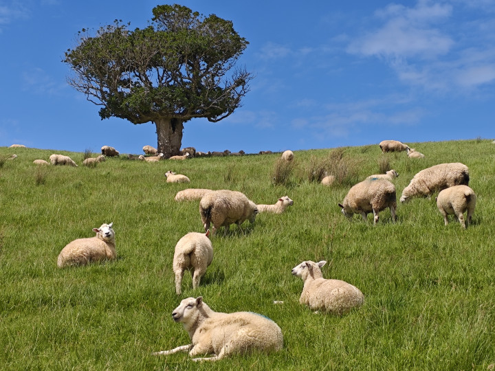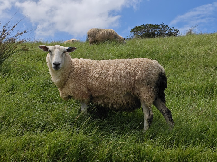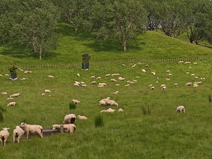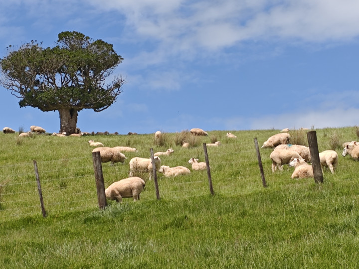 穿过一个牛场,翻越一座小山头,就是一个牧羊场。这里都是绵羊,女儿说新西兰的绵羊毛长绒优,在世界的羊毛市场上占有绝对的优势……