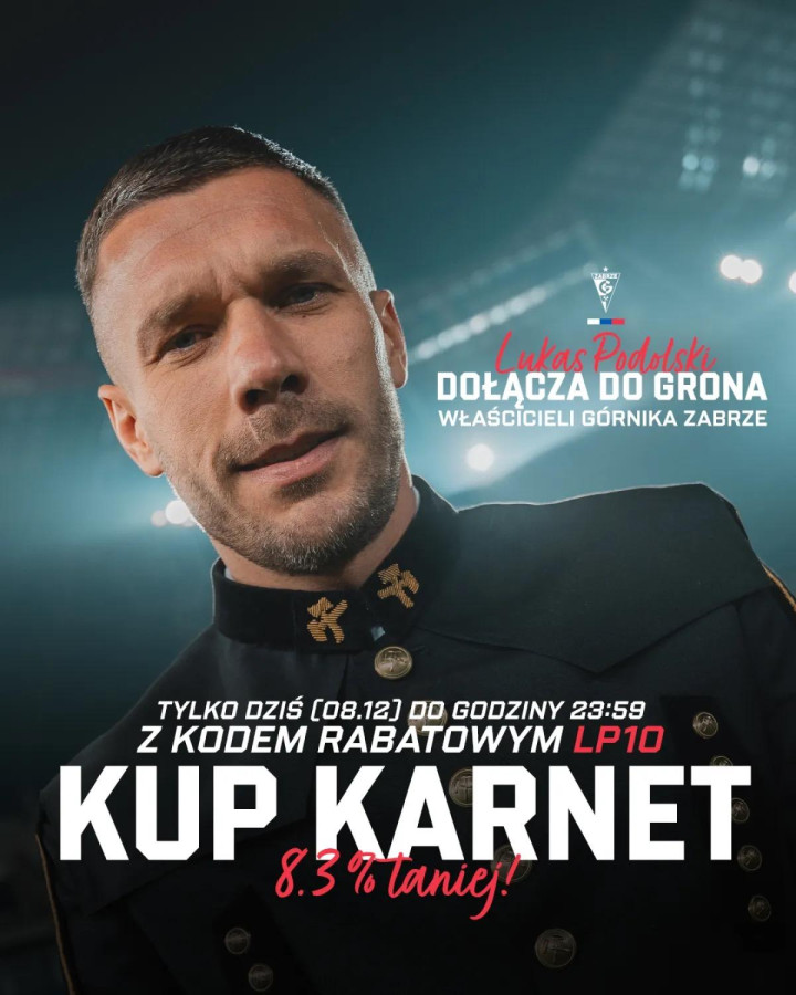 虎扑12月08日讯波兰球队扎布热矿工官方宣布,卢卡斯-波多尔斯基正式成为俱乐部的共同拥有者。
